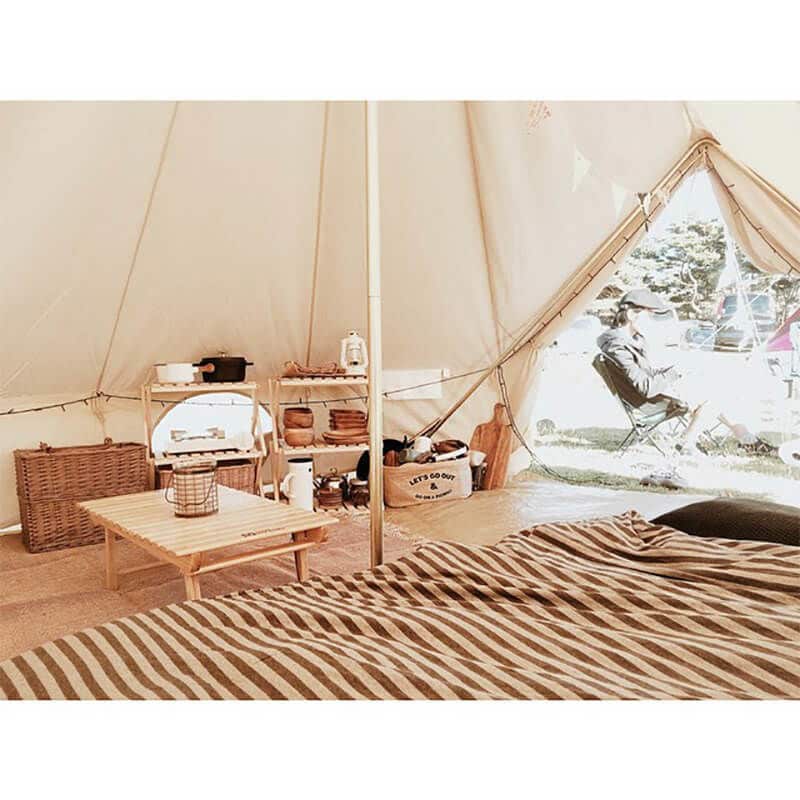 CanvasCamp uses 100% cotton canvas that is sustainable, renewable, and biodegradable. Cotton is one of the most durable and eco-friendly fabrics, and our canvas is certified with the Seal of Cotton®. The natural beige color glows both inside and outside the tent, creating a cozy atmosphere.