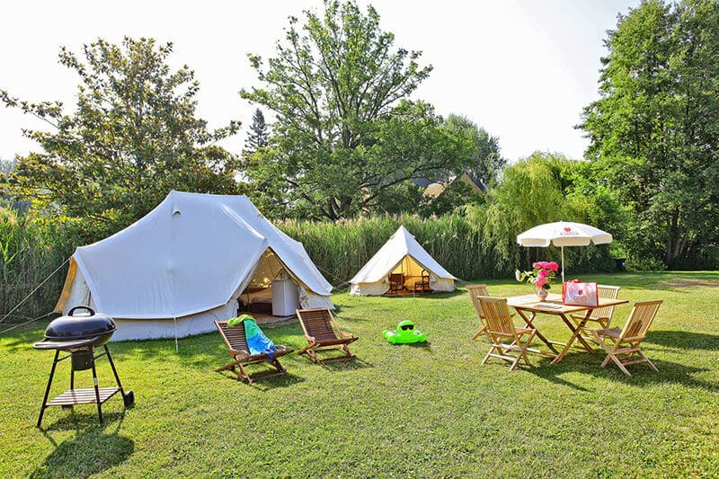 600 Twin — це комбінація двох дзвонових наметів, з’єднаних за допомогою рейки. Овальна форма створює два «крила» з центральною житловою зоною. Крутий кут канвасу та катедральні стелі забезпечують достатньо простору для руху.